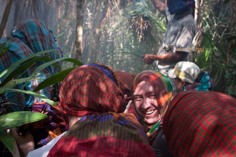 Après s’être bien couvert le visage, nous partons dans la jungle à la recherche d’essaims sauvages